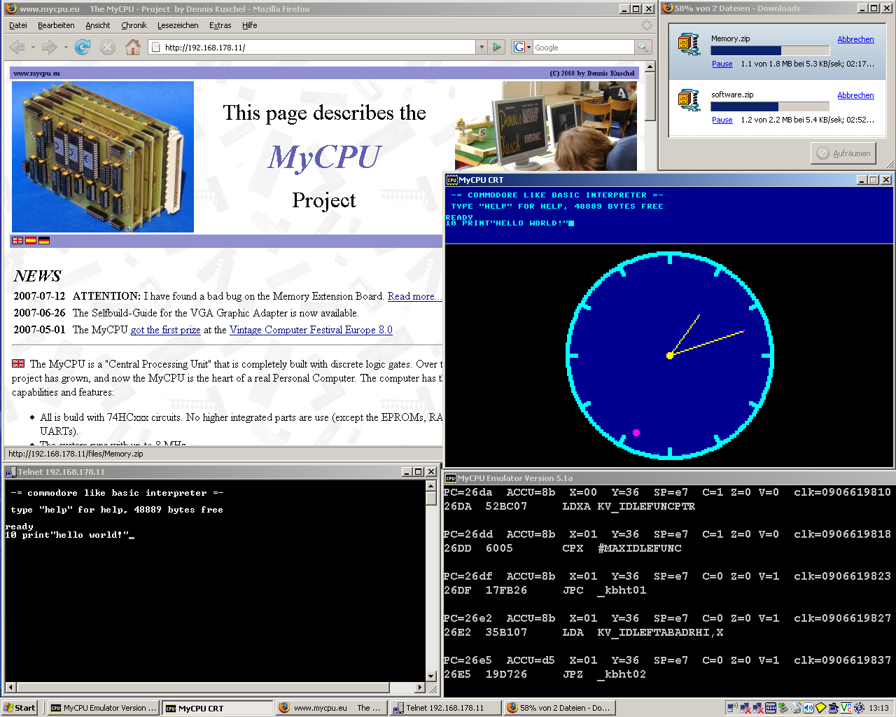 so dass man mit der MyCPU im Internet surfen und Dateien herunterladen kann.