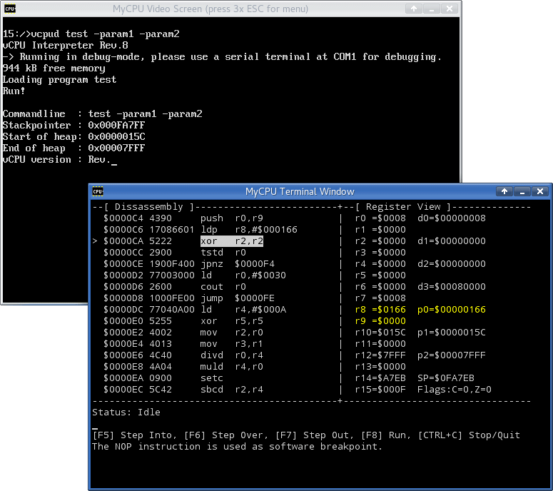 vCPU is a virtual 16-bit CPU that is emulated by MyCPU in software. Why that? There are two reasons: First of all,