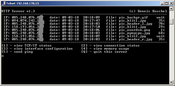 below shows the webserver 'in action', serving three connections at once.